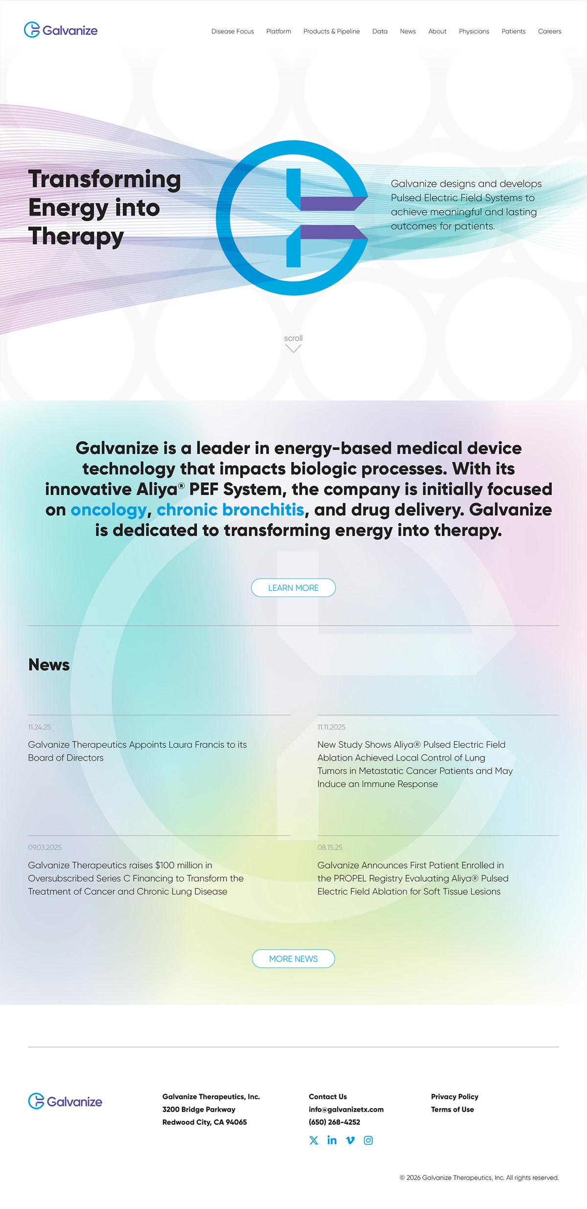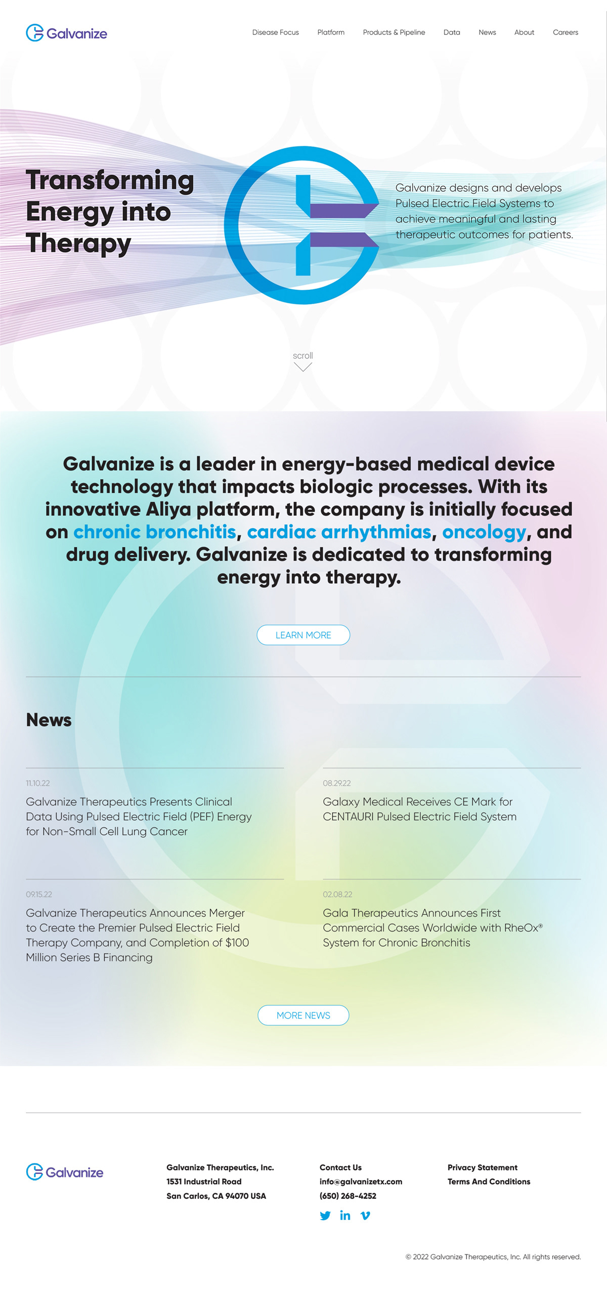 Galvanize Therapeutics was in a company transition phase. Their brand identity was essentially changing from a product/technology brand to being a parent brand of multiple subsidiary brands. A new website was necessary to convey the change and new direction. Developing the website was truly a collaborative process as we worked closely with their internal team. In the end, the website launch coincided perfectly with the announcement of the company restructuring.