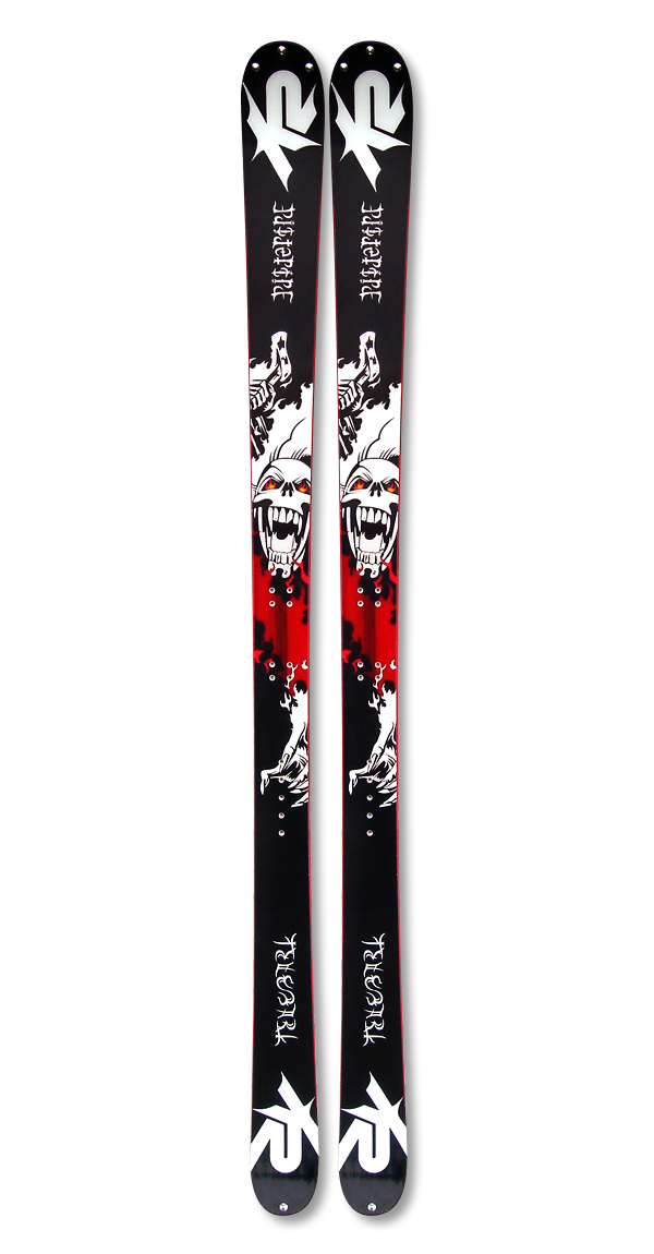 When telemark went freestyle, the K2 PistePipe was born. K2 wanted a graphic that would set the line apart from the traditional nordic-based stereotype so we threw this att'em. Ghost Rider inspired graphics, death-metal style ambigram logotypes, and studded tips. Let the hucking begin.