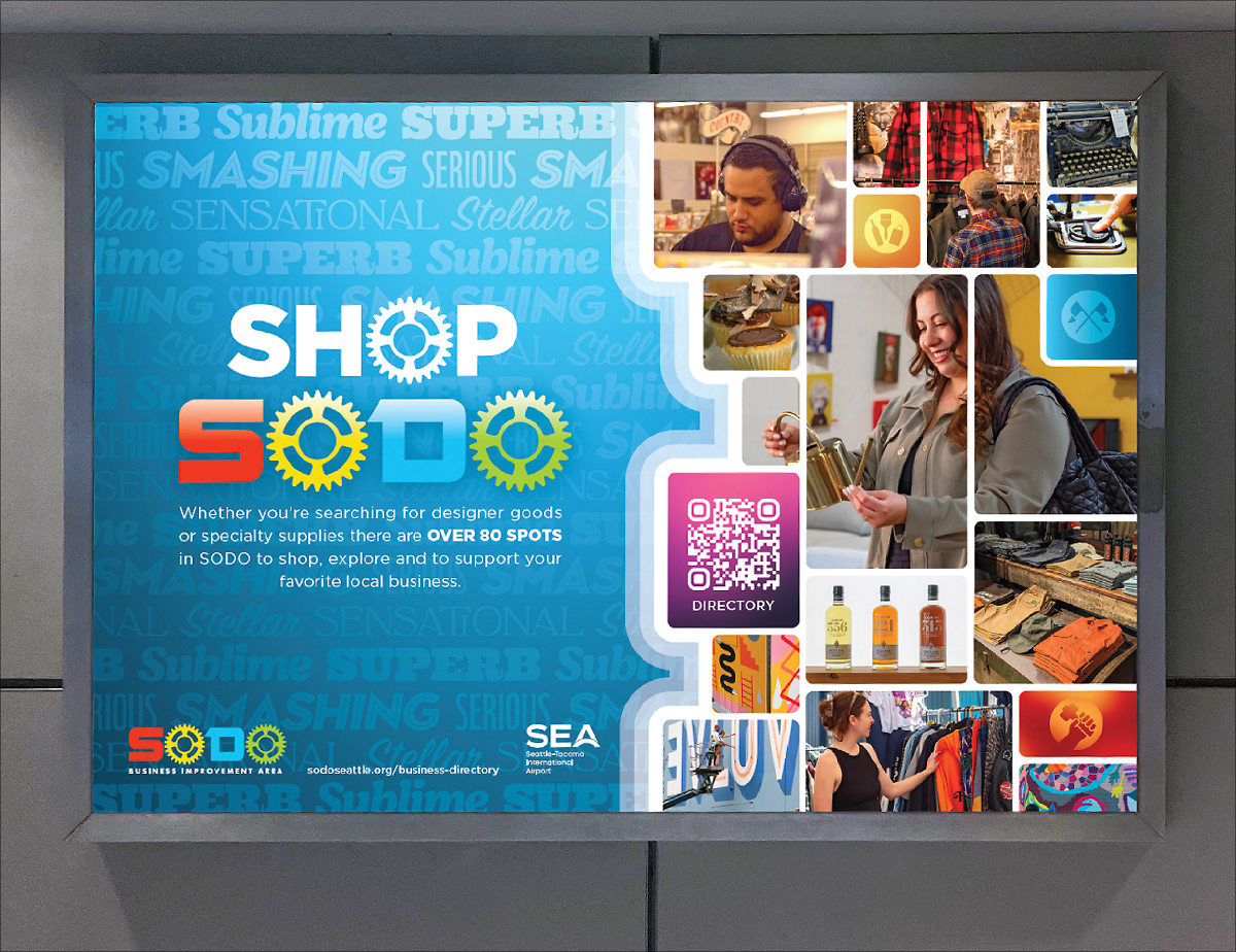 Seattle’s SODO district is a unique blend of residential, commercial, and industrial areas. Overseeing this district is the SODO Business Improvement Area whose objective it is to respond to every demographic need. It’s a challenging balance, and through regular outreach and clear communication channels, they keep the area thriving. Horsepower has partnered with the BIA to add impact to their communications including advertising campaigns at SeaTac Airport, State Of SODO annual reports, and variety of other print & digital materials.