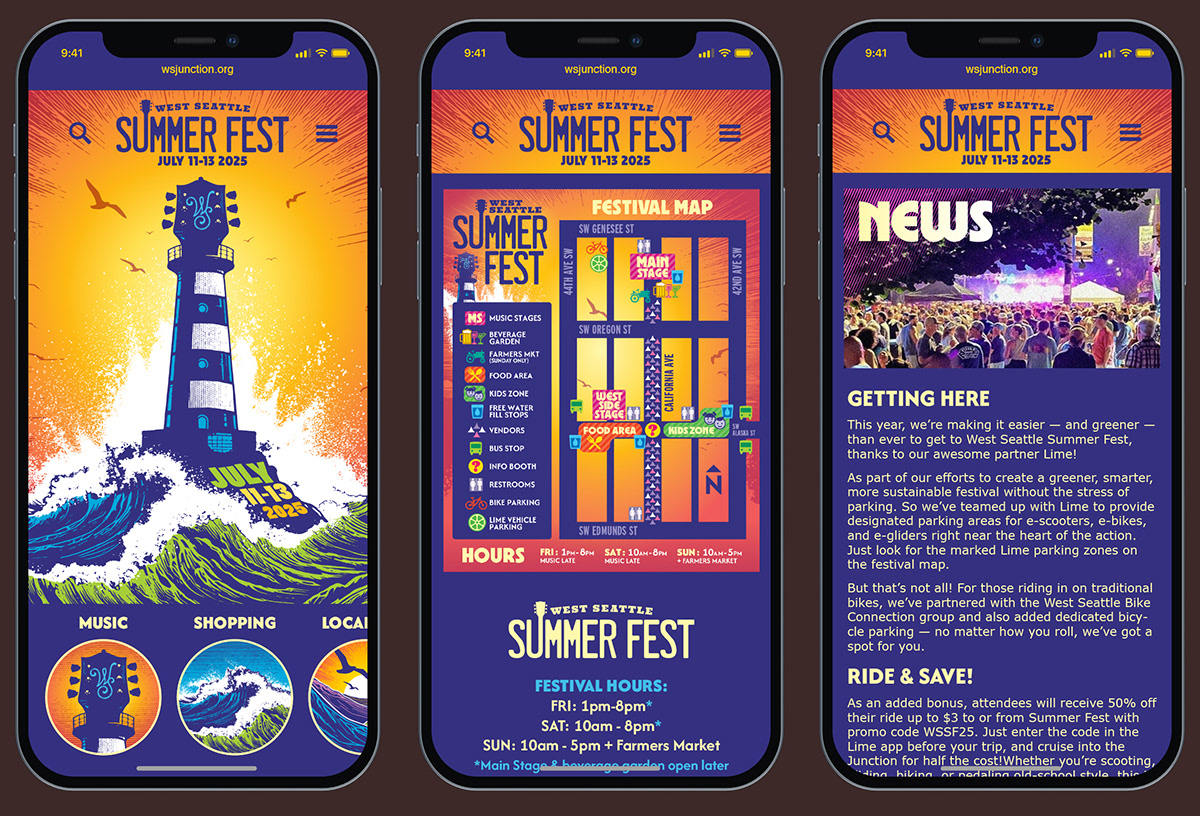 The annual West Seattle Summer Fest is a 3-day blend of live music, street vendors, food trucks & family-friendly activities. Creating vibrant imagery that resonates among a wide demographic is key to its success. Materials created included posters, website, online & print ad campaigns, stage scrims, event banners, merchandise and more..